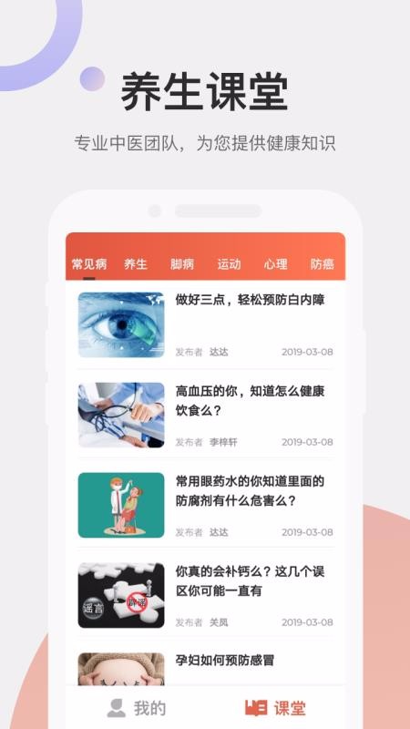 1、查看养生课堂的信息,了解课堂的情况,并快速学习,提高养生的质量,让养生变得更简单;