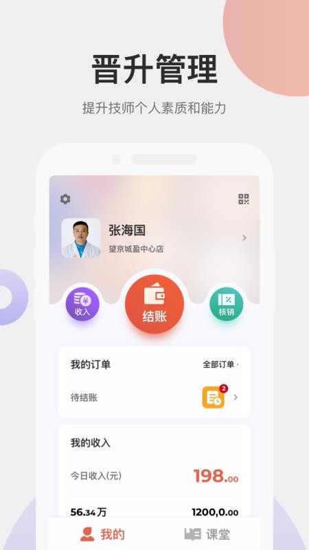 远元集团技师app是一款简单方便的养生服务软件,让运营变得更随意,给客户更好的养生体验,提高养生的质量;软件提供了众多专业的养生课堂,让客户知道更多养生的知识,提高养生的质量,给客户满意的养生服务;然后根据客户养生的需求,自主点单,给客户贴心的服务,点单更方便,提高点单的效率;完成点单后根据服务类型为客户进行养生,让医生更方便,提高养生的质量,最后通知客户付款,与客户之间建立更好的关系,并将付款金额进行统计,知道个人收入的情况,运营管理变得更简单,提高养生服务的质量,运营更方便。