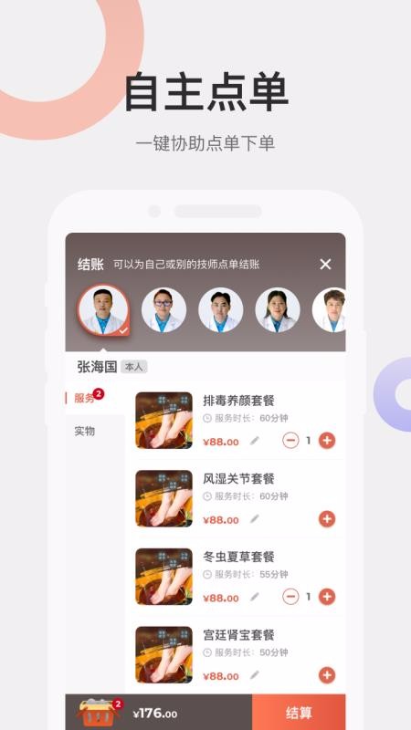 5、根据客户的需求为客户点单,点单更方便,让客户满意,养生服务更全面