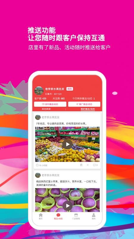 4、发布动态,用户可在线发布各种动态信息,对店铺和商品进行推广;