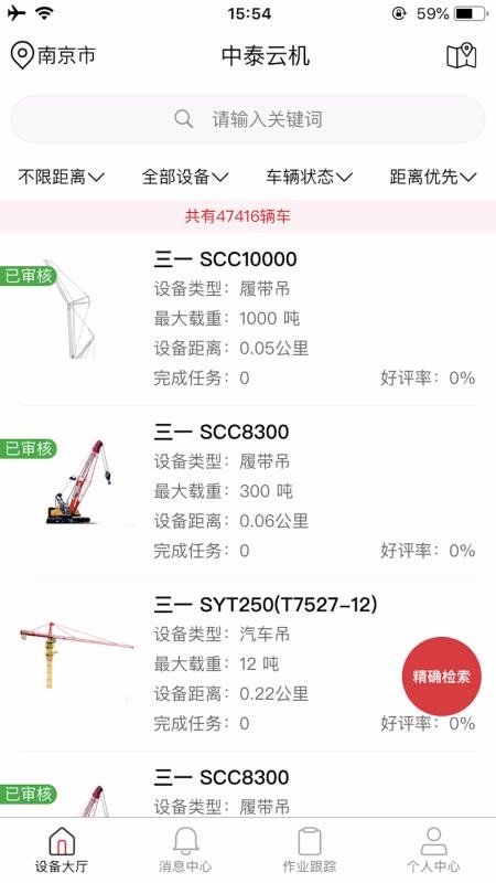 2、清晰丰富的设备基础信息,从设备封面就能看到其设备类型、最大载重以及设备距离等;