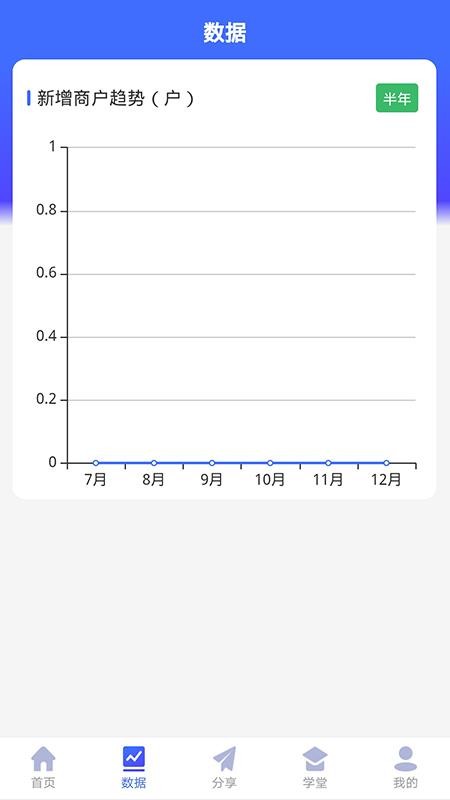 3、进入数据版块,查看近半年的新增商户趋势图,了解不同月份商户新增数量