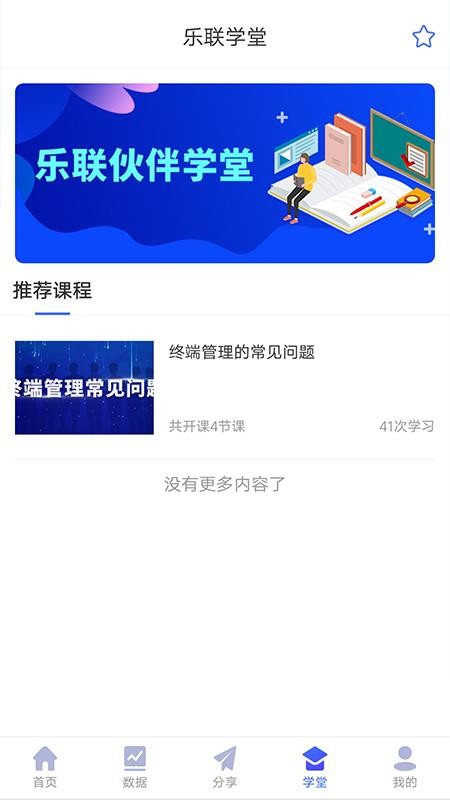 乐联伙伴app是一款帮助用户进行创业的软件,让用户能够清晰看到业务数据,获得更多的收益;用户通过软件能够在线对各个终端进行管理,了解各个商户终端的详细刷卡情况,掌握不同商户的营收信息;在软件中用户还可以看到各种数据内容,通过数据了解自己的业务推广情况,让用户能够制定更加合理的推广计划,快速提高商户数量;在这里用户能够找到多种类型的课程,通过各种课程学习更多的知识,让用户可以更轻松的进行工作,提升效率;快下载这款软件试试吧,掌握详细的业务数据内容,在线学习创业知识。