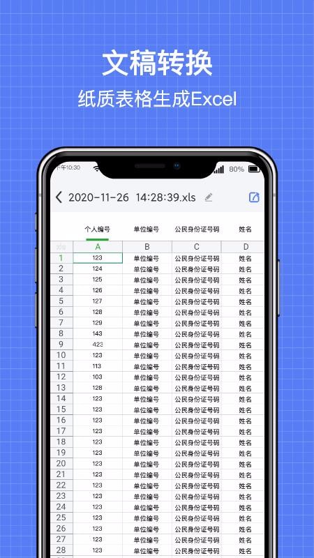 2、便捷的纸质表格生成操作,只需一键识别扫描即可生成相应的电子表格;