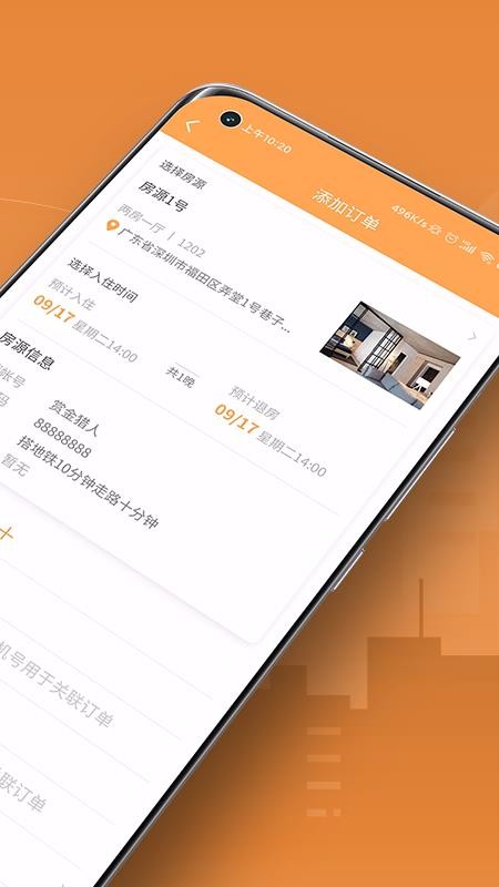 2、添加新的订单,根据实际的租房需要在线添加新的房间预订订单;