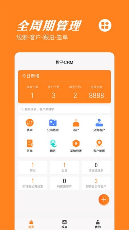 橙子CRM是一款营销商家管理服务软件,该软件可以适用于销售类的企业和团队,提供统一销售各个环节管理服务,帮助企业和团队了解每天销售的情况,智能统计销售数据信息,展示销售相关的内容,有助于提升企业销售业绩;并且在线实时管理客户的信息,支持将潜在客户录入并实时跟踪,了解客户的需求,针对需求进行个性化的营销,能够提高销售成功率,在跟踪的时候将客户相关的信息内容登录,在线分析客户,这样才可以快速知晓客户的需求,让推销更多顺利;同时及时在线了解员工办公的情况,在线全程监督员工销售的业绩信息,管理员工非常简单。