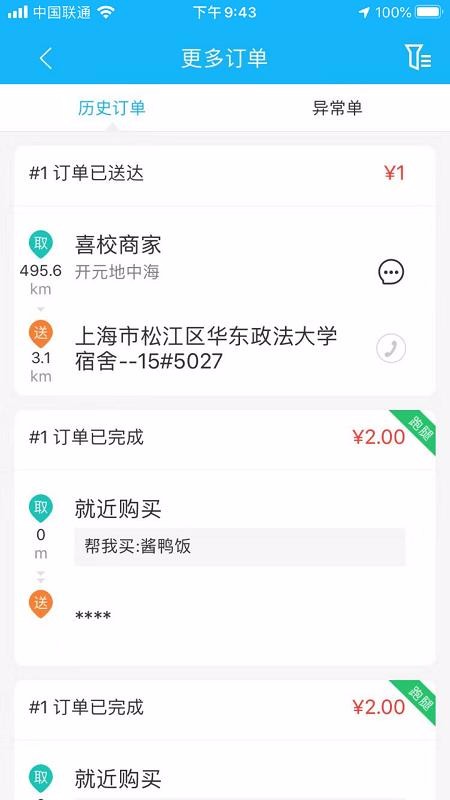 4、在界面的右上角点击进入更多订单页面,即可查看保存的历史订单和异常单