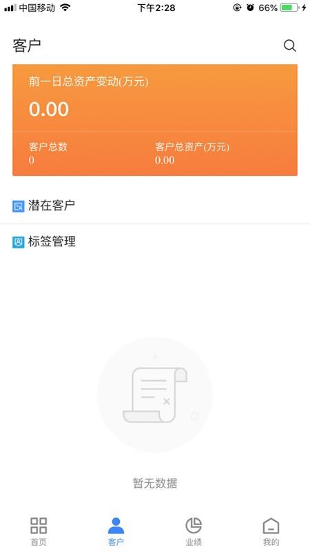 3、进入客户版块,查看自己的客户总数和总资产信息,了解总资产变动情况