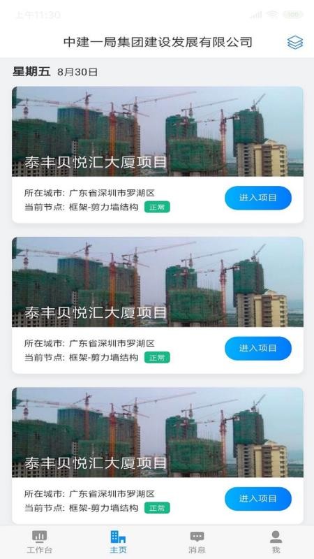 1、在首页中为用户清晰显示各个项目的名称、所在城市和当前的节点信息,方便用户了解;