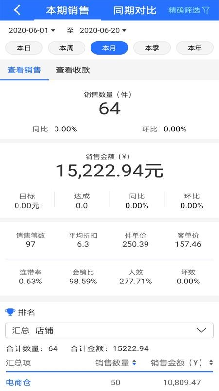 4、用户在软件中可以看到自己的销售数量、目标达成情况和平均折扣等信息;