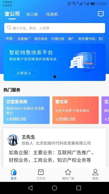 1、提供人脉查找,帮助用户快速的找到更多的人脉信息,快速的进行使用;