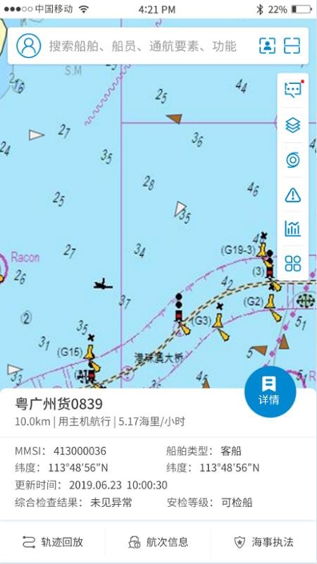 5、用户在软件中能够清晰看到船只的航次信息,并且可以快速进行海事执法;