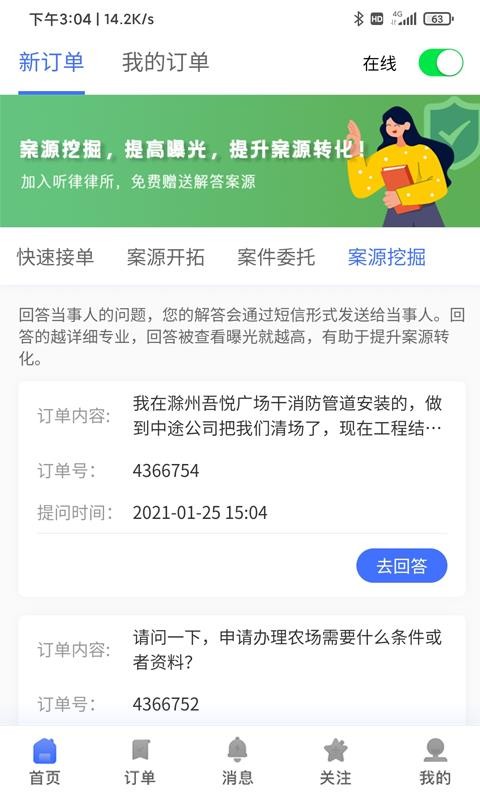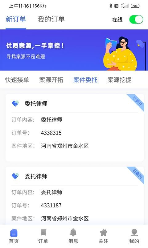 3、法律订单会清楚的显示在平台里,让用户更好的进行查看,实时的管理;