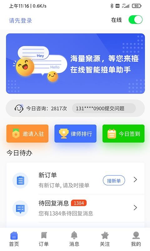 听律律师端是一款为律师提供服务的软件,能够帮助用户更好的进行使用,清楚的了解各种法律问题,帮律师能够轻松的进行工作,及时的解决自己的委托问题,让律师能够获得一个强大的工作帮手,及时的解决各种法律问题,让律师可以轻松的进行工作,快速的进行使用;各种法律问题全部推送在平台里,用户在线可以清楚的进行查看,帮助你随时随地的处理法律问题,提高你的沟通效率,让律师和客户能够更好的进行沟通,快速的解决各种案例信息,让律师可以获得优质的服务,轻松的进行工作,满足你的使用需求,让你在使用的过程中更加的方便。