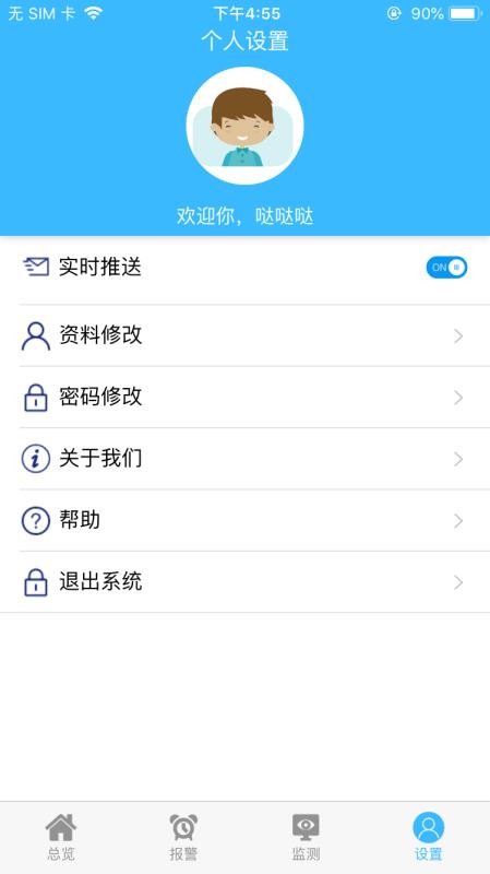 5、打开个人中心,一键开启或关闭实时推送功能,在线修改资料和密码