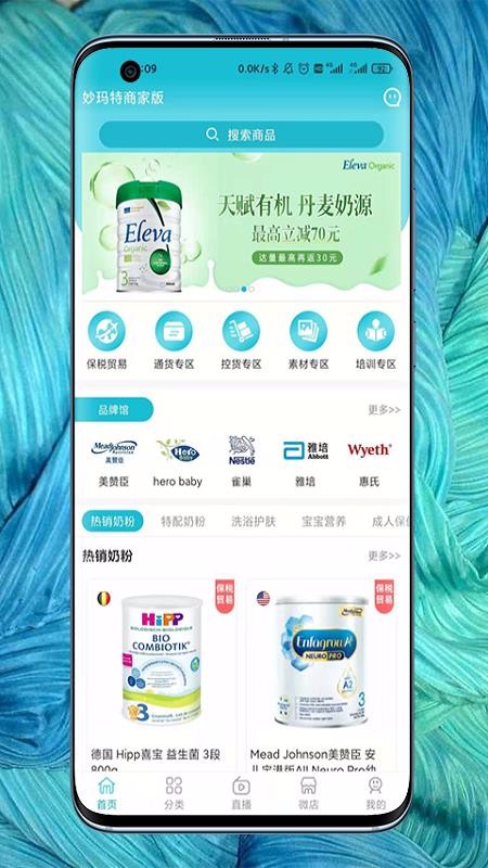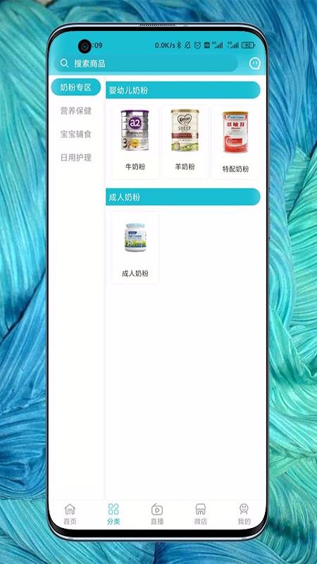6、还有便捷的分类筛选中心,该中心有奶粉专区、营养保健、宝宝辅食以及日用品等类别;
