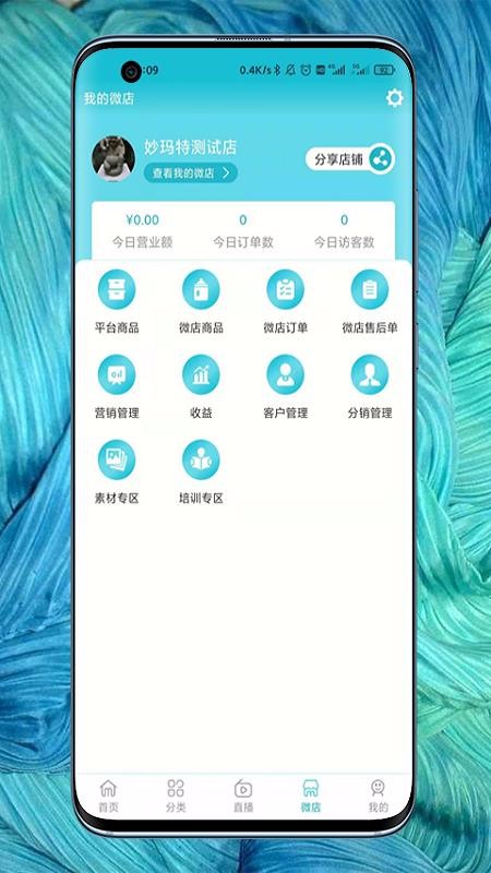 1、丰富的微店功能,这里有收益、营销管理以及分销管理等功能;