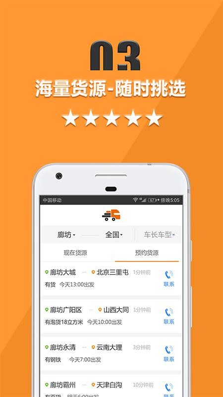 4、预约货源,众多的预约货源订单展现在用户面前,可自行查看;