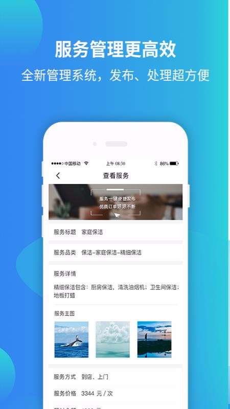 4、多样的服务信息展示内容,服务商品里面将各种信息划分展示,内容更清晰,管理更方便;