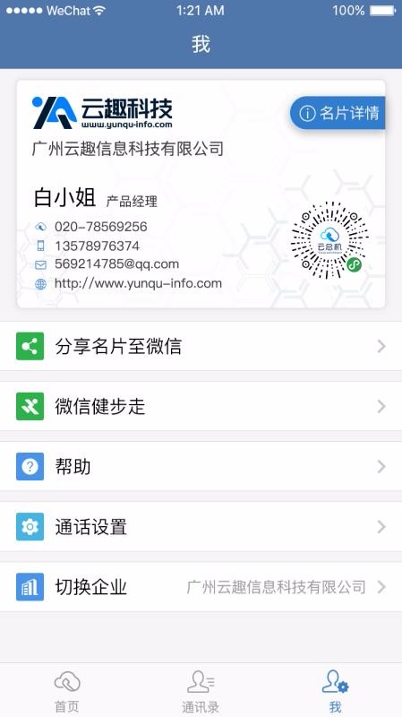5、拥有丰富的个人主页设置功能列表,比如名片分享、微信健步走以及帮助和通话设置等;