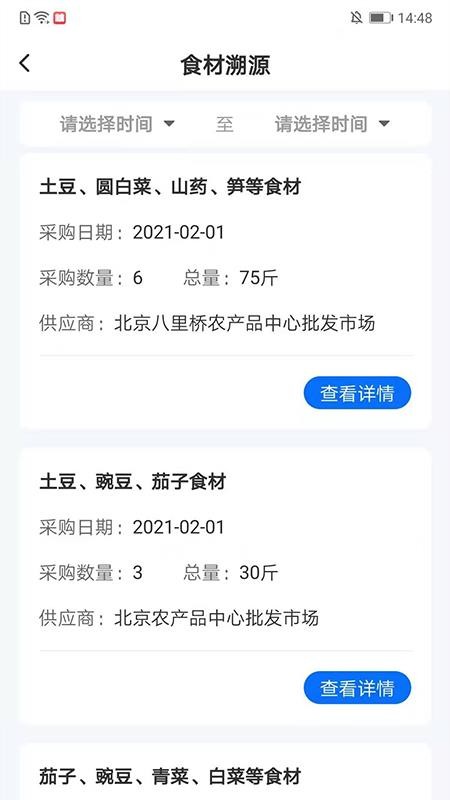 5、打开食材溯源版块,查看各个食材的供应商信息和采购数量,掌握食材源头