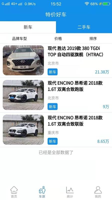 2、根据车辆的类型,分为了新车以及二手车,可根据需要查看;