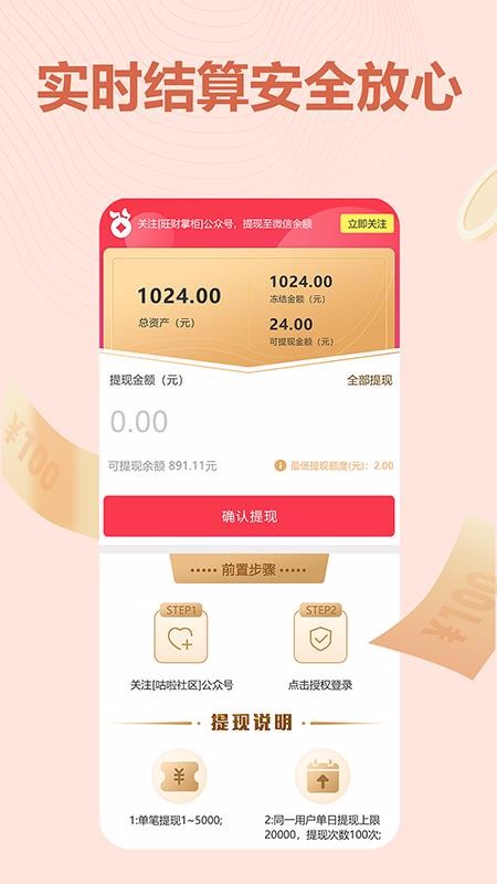4、贴心的提现步骤说明,在余额提现中心展示了清晰详细的提现步骤说明内容;