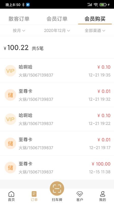 5、提供订单版块,用户在这里能够看到各个散客订单、会员订单和会员购买订单信息;