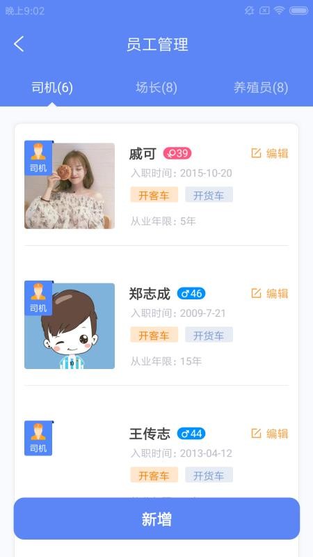 6、点击员工管理,就能快速的管理养殖场员工