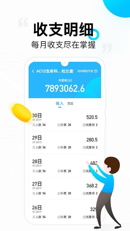 4、进入收支版块,查看详细的收入和支出信息,了解月营收金额