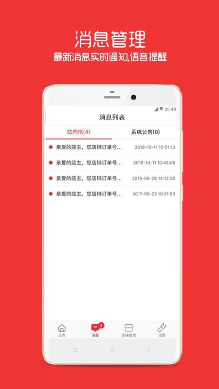 4、进入消息页面,可以查看系统公告和订单等消息的信息,方便了解店铺的经营