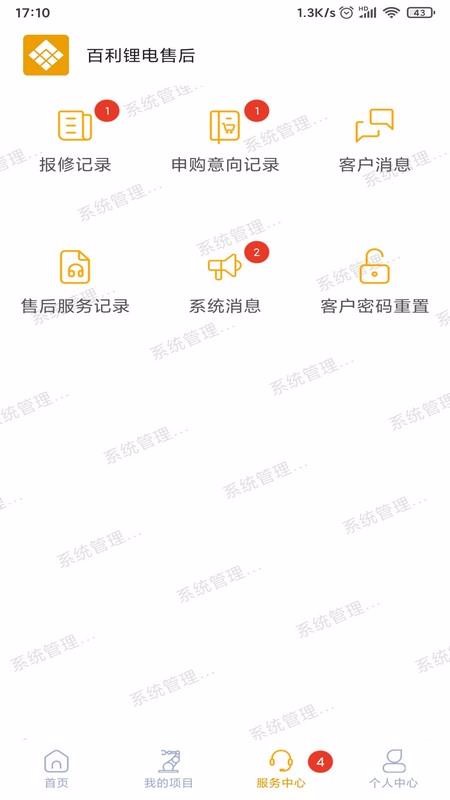 4、在服务中心,为你展示了客户密码重置、系统消息、客户消息、报修记录等功能