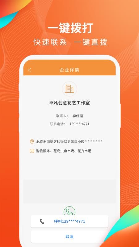 5、提供一键拨打功能,用户可以一键拨打各个企业的联系人电话,方便快捷;