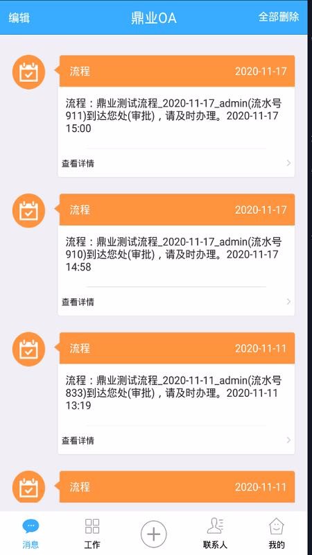 鼎业OA应用软件是一款移动办公app;可以使用这款软件完成签到、审批或者接发邮件等日常工作问题,随时随地打开就可以办公,致力于为企业员工创造更加舒适的办公环境,可以高效解决办公难题,从而提升办公效率;将会完整存储企业或者团队的文档,可以随意打开查看,从而更便捷的使用相应文档;所有流程将会完整记录至平台,分类保存随意查看,从而有效处理流程问题;拥有强大的存储功能,能够保存众多的信息,支持随意选择删除不需要的信息,从而及时释放内存,有需要的朋友赶紧下载开始办公吧。