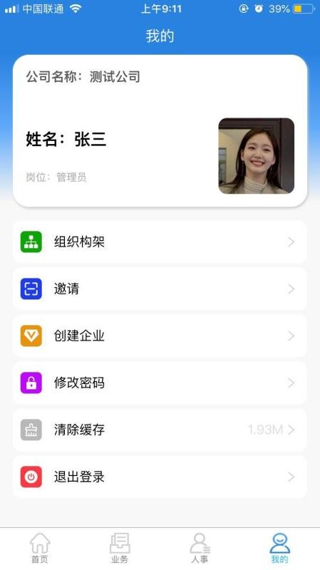 5、打开个人中心,查看自己的基本信息,了解企业的组织架构详情,一键邀请同事
