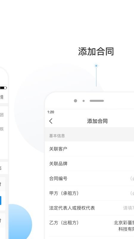 6、应用中有添加合同功能,用户可以快速填写各种基本信息后一键添加合同;