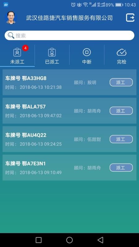 2、在首页中查看各个未派工的汽车信息,快速对车辆进行派工,及时维修车辆