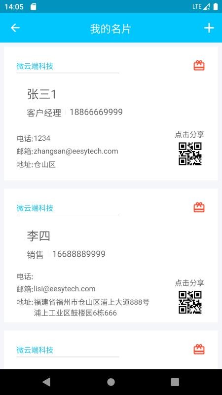 5、拥有名片夹,收录了用户交换的各种名片,可随时浏览;