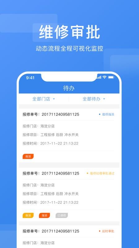 2、报修审批,在线即可查看到审批进度,轻松的了解到审批信息;