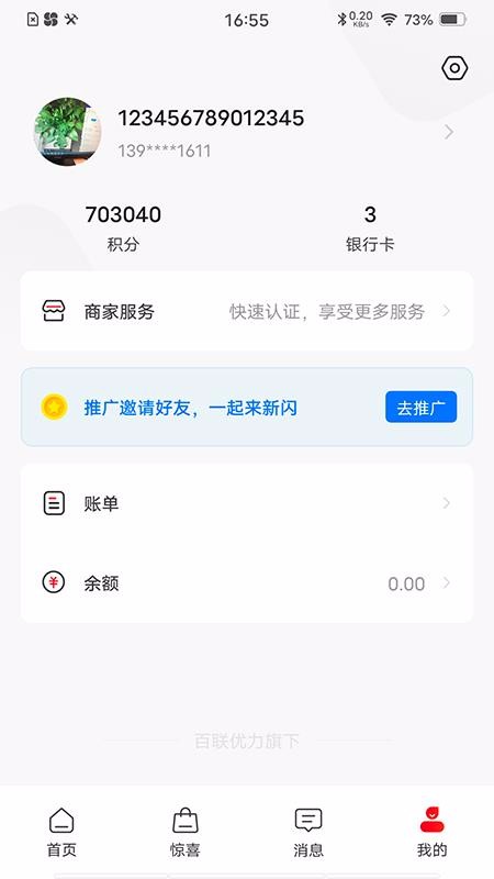 1、一目了然的个人中心数据栏,该栏清晰展示自己积分余额和银行卡数量;