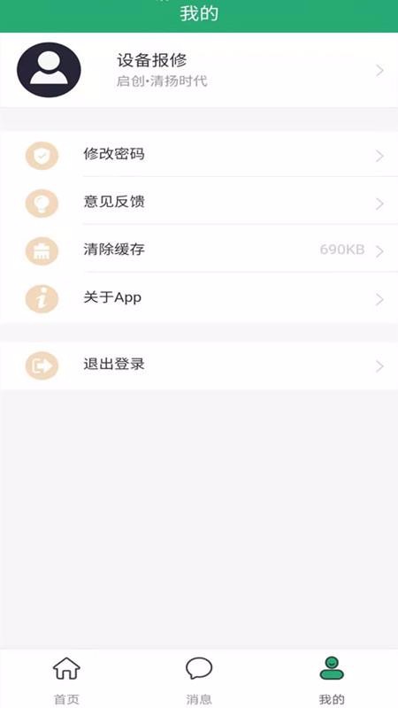 5、进入我的页面后,可以选择修改密码、意见反馈、关于、退出登录等功能进行使用