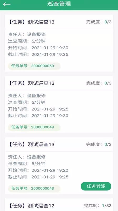3、在巡查管理页面,通过列表形式展示了所有巡查任务,并了解完成度