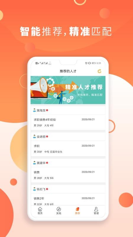 5、在推荐界面中,用户可查看推荐的各种优质人才