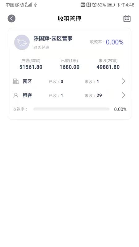 2、查看本月收租的数据信息,可以知晓收租的情况,知晓收租的进度;