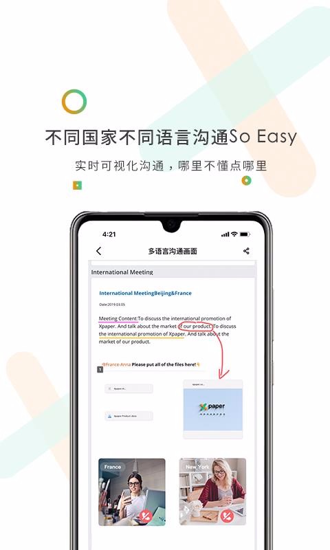 Xpaper是一款可视化办公软件;您可以使用这款软件在任何场景下开启办公模式,该软件支持多语言沟通,可以自由开启语音或者视频通话,国际化会议轻松搞定,能够有效传输项目文件,各种文档格式都可以查看,支持多端实时互动,可以实时更新信息,各个数据安全完整的存储,随时随地想看就看,从而高效协同办公;可以自主管理会议,能够随时查看会议记录,还能够一键点击分享记录至其他平台;远程协作更加省时省心,使用这款软件,可以解决您日常工作以及团队沟通等难题,赶紧下载试试吧。