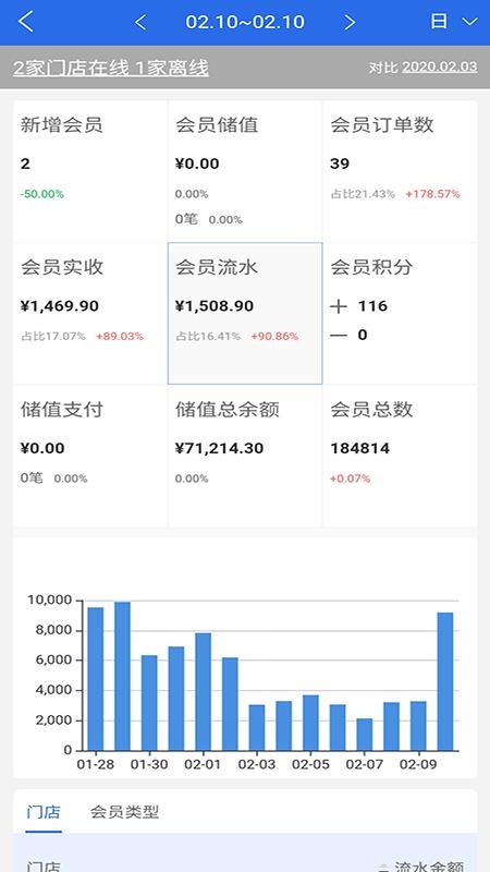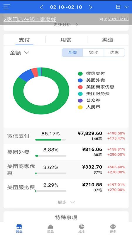 3、在线就能快速的查看多家门店的经营数据,带给了用户便利;