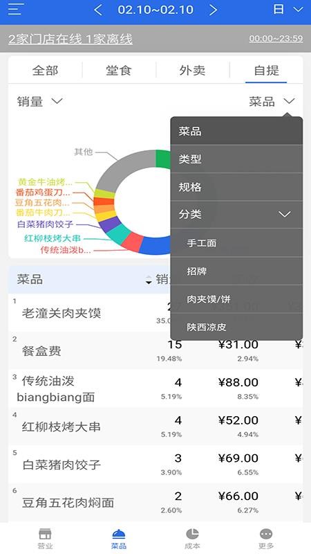 5、在菜品界面中,用户可查看到菜品的销售数据