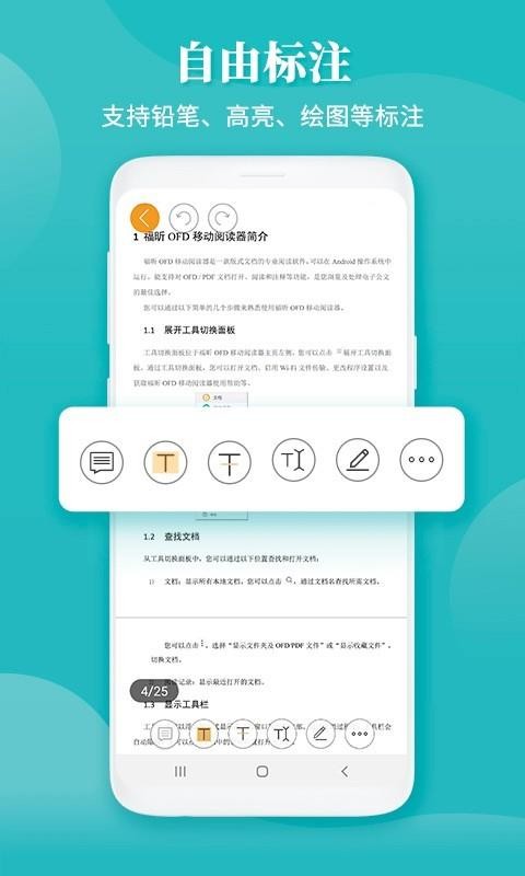 福昕OFD是一款移动阅读器,可以随意的阅读各种文件学习,让用户在工作的时候能够更加的快速,提高你的工作效率,在平台里可以尽情的使用,满足用户的使用需求;具有的功能非常的多,在平台里能够获得导航服务,帮助你快速的定位文件信息,准确的进行阅读,清楚的了解文件的具体内容,让用户能够轻松的进行使用;而且还支持图形标注、文本标注、手写签批等操作,用户进入平台就能够快速的使用,更好的解决各种工作问题,让你在使用的过程中能够了解各种文档信息;同时软件具有体积小巧、启动快速的优点,用户可以随意的进行使用。