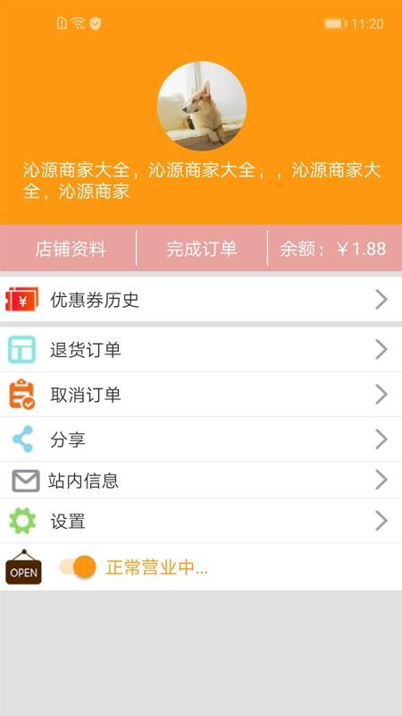 2、在首页中查看自己店铺的资料信息,了解各个已完成订单内容,掌握余额情况