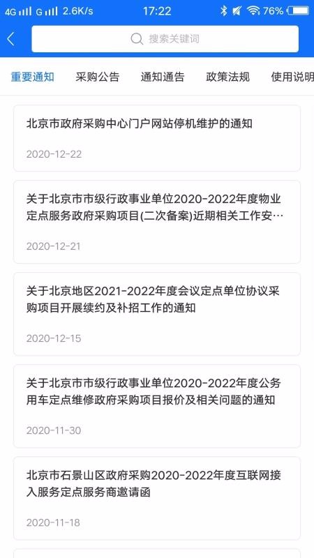 京采通是一个高效的采购服务平台,开设了重要通知、采购公告以及政策法规等专区;可以在软件看到最新的重要通知信息,这里设置重要通知栏并将最新的重要通知内容罗列展示,支持挑选其中一个通知公告内容并打开阅读详情;除了能看到各种默认的全部分类功能页面内容外,还能点击主页的更多图标查看更多的栏目分类,这里有首页栏目编辑框,支持根据自己的需要将各种分类应用添加或修改,也支持自由排序其中的应用图标;主功能栏中设置企业名录查询资源中心,在这里能自由查询不同的企业信息,可以在企业详情看到企业的具体资料内容。